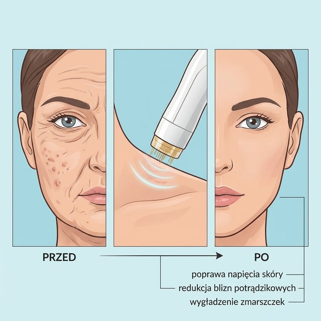 - wywołuje kontrolowane mikrouszkodzenia stymulujące proces regeneracji,